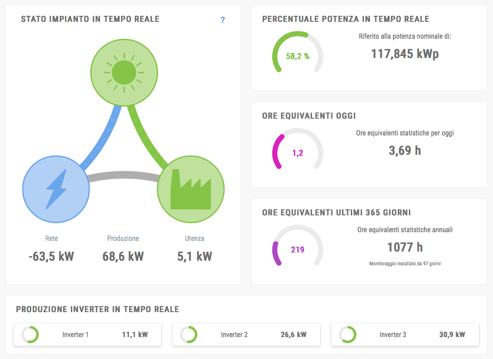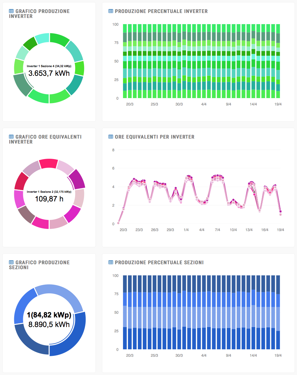 Grazie al suo sistema di sensori Smart Sun System è in grado di misurare la produzione di tutti gli inverter installati nell’impianto. Tutti questi dati vengono raccolti in modo da poter essere visualizzati dai clienti ed esaminati dagli algoritmi del sistema per rilevare evantuali anomalie di produzione.