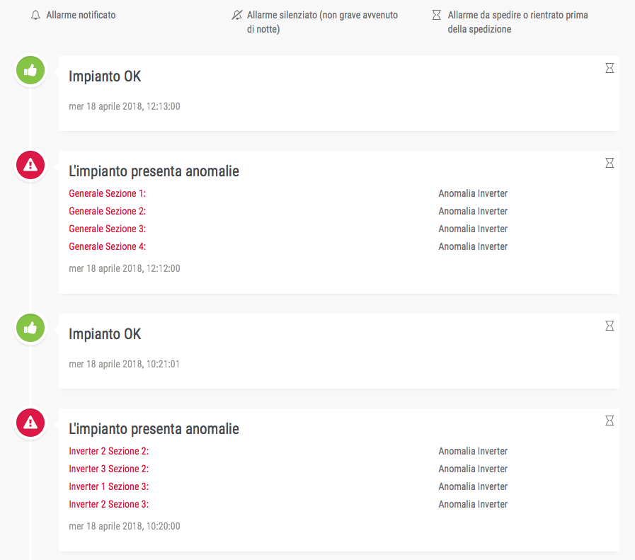 Se vengono rilevate delle anomalie di produzione il sistema avvisa tempestivamente il responsabile dell’impianto in modo da garantire il ripristino tempestivo della produttività.