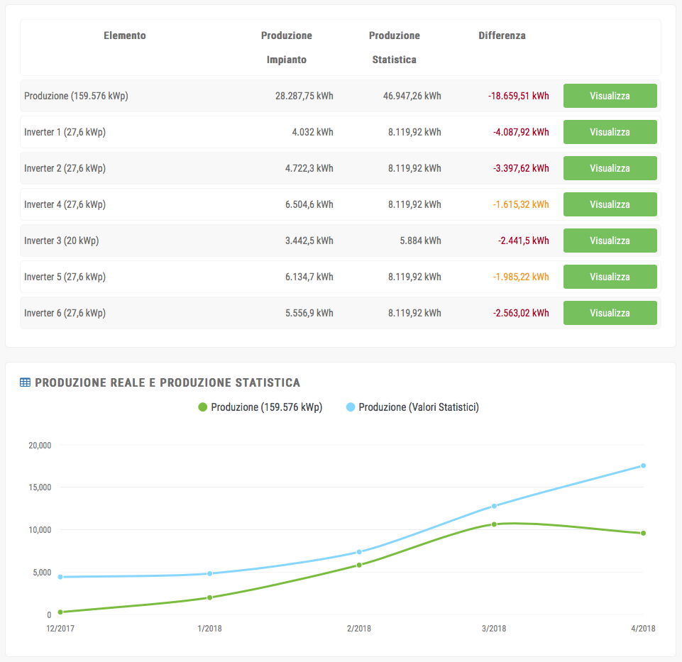 Grazie al suo sistema di sensori Smart Sun System è in grado di misurare la produzione di tutti gli inverter installati nell’impianto. Tutti questi dati vengono raccolti in modo da poter essere visualizzati dai clienti ed esaminati dagli algoritmi del sistema per rilevare evantuali anomalie di produzione.